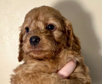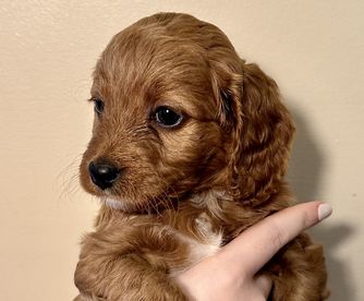Ruby is a female Cockapoo. Carefully selected as a great representative of her breed, Vicki decided to make her part of their program. Vicki has passed Good Dog’s screening process, which involved a review of their breeding practices, environment, and the mental and physical health of their dogs.