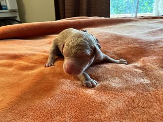 Puppy prices include a $300 non-refundable deposit and between $1,200 - $1,700 final payment, before taxes & fees.
