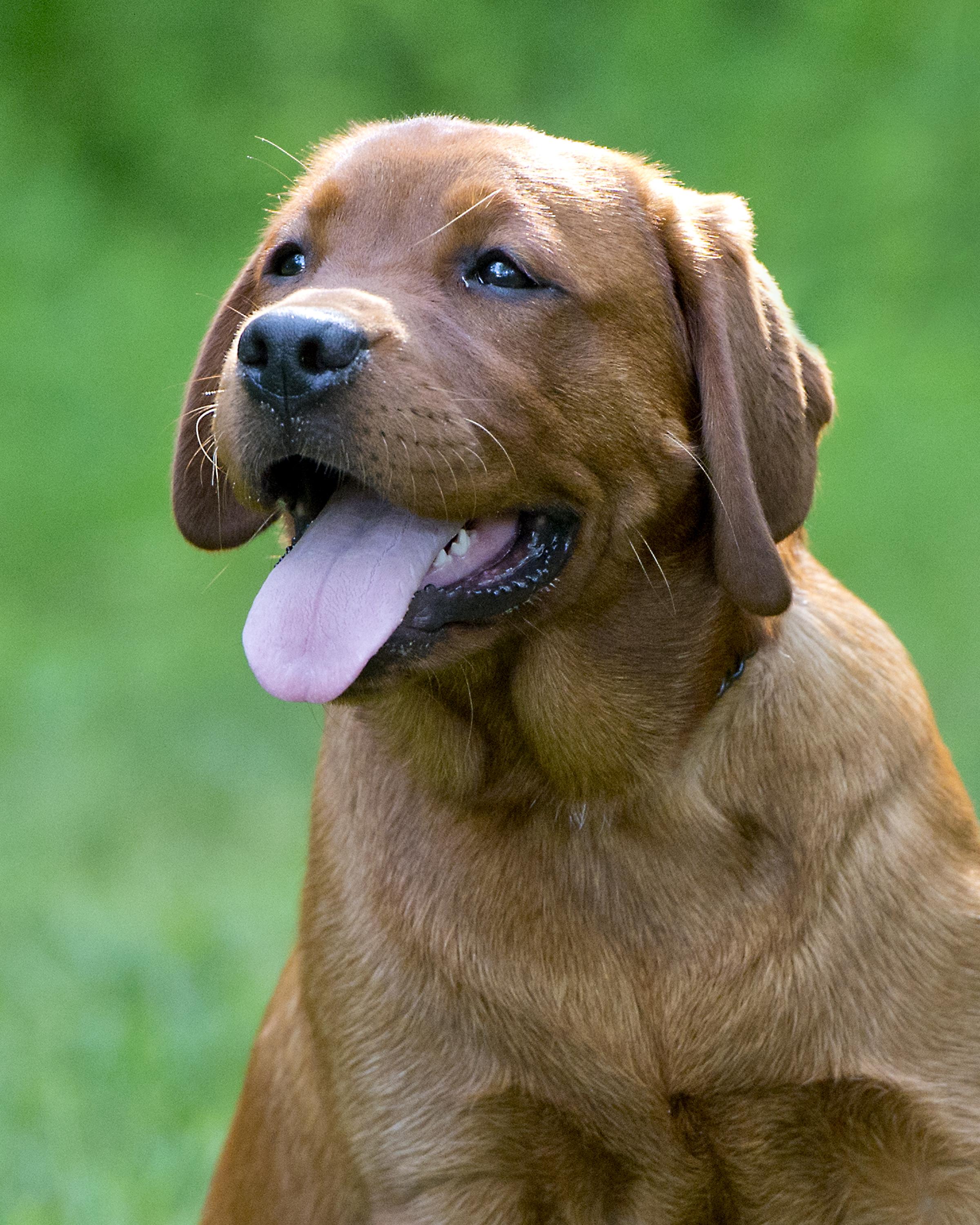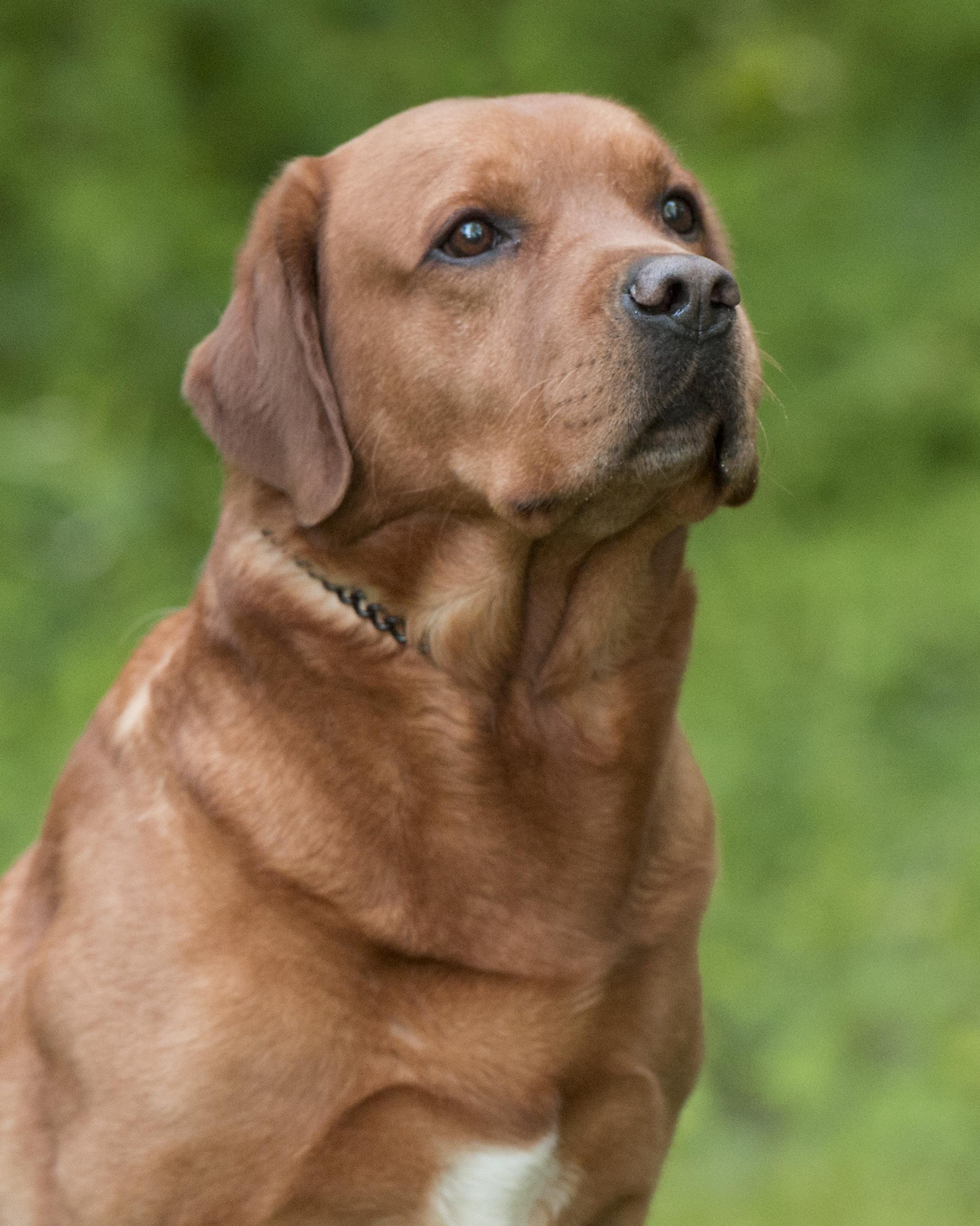 Fancy is a sweet full English dark fox red Labrador Retriever. She is short and stocky. Her ancestors include Barnes, Keepsake and Boradors. She has a sweet temperament, loves attention and has a cute personality.
