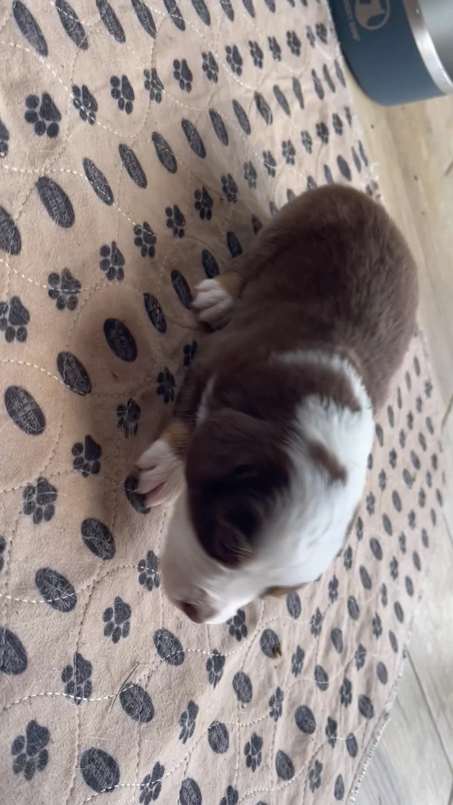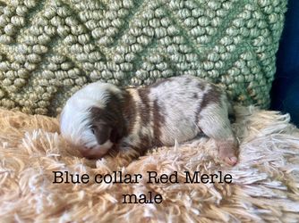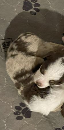 Blue Merle female 2. Should be a smaller mini Aussie.
