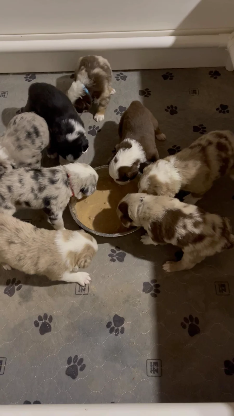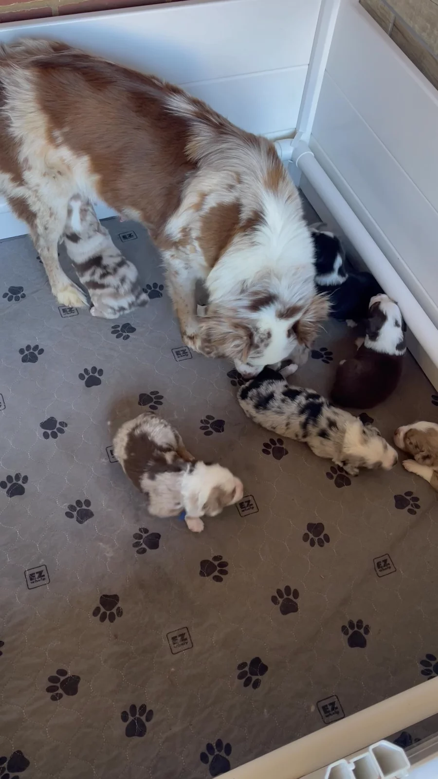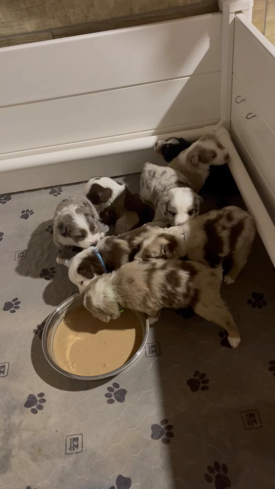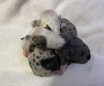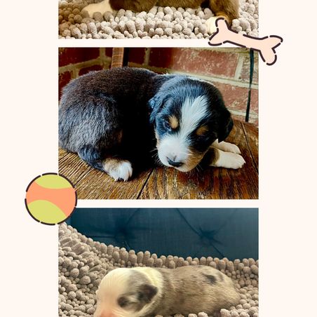 Our puppies include blue merle, red merle, red, and black. Colors will vary depending on the parent dogs.