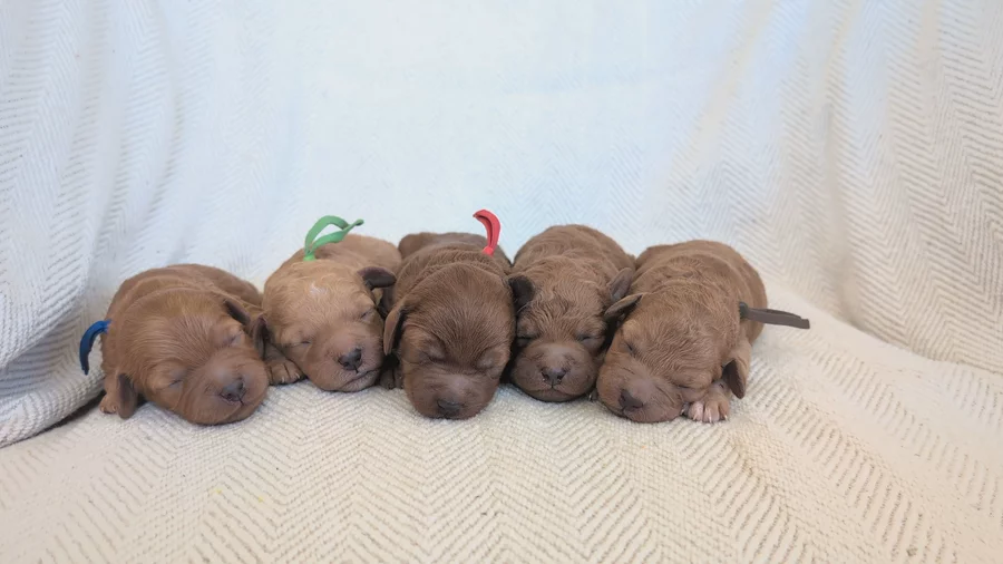 Our puppies include red, apricot, cream, and tri-color. Colors will vary depending on the parent dogs.