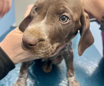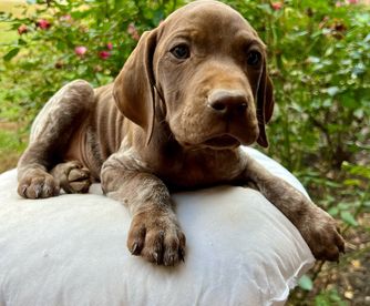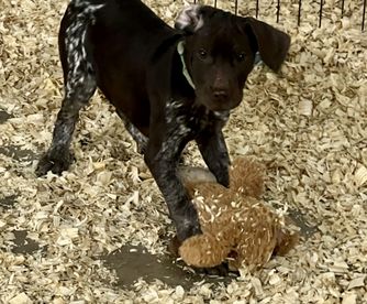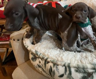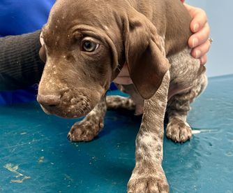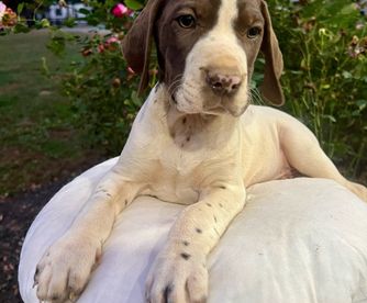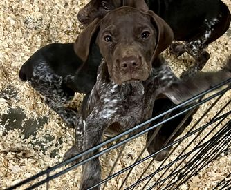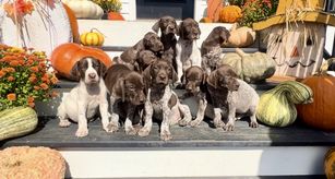 Our puppies include liver and white and liver roan. Colors will vary depending on the parent dogs.