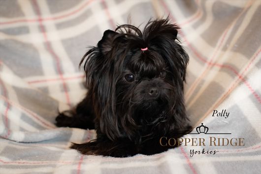 Polly is the happiest little dog. She’s loves everyone she meets. She enjoys belly rubs and cuddle time. She’s a rare solid black yorkie and can produce solid black puppies. Polly has an extreme babydoll face.