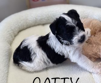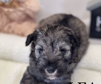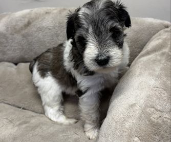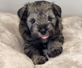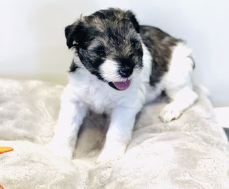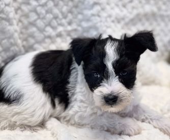 Our Miniature Schnauzer puppies include parti, black and silver, salt and pepper, and black. Poodle puppies include apricot and red. Yorkshire Terrier puppies include liver, blue and gold, and black and tan. Colors will vary depending on the parent dogs.