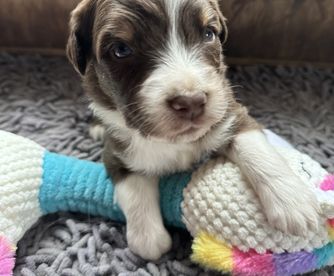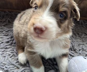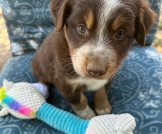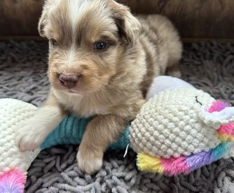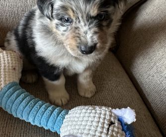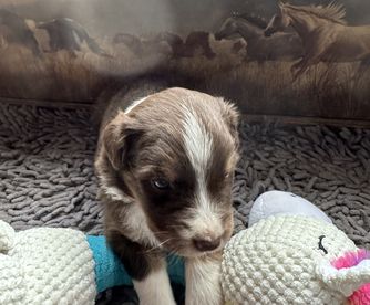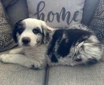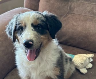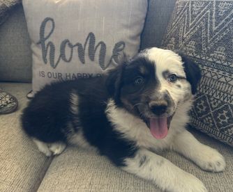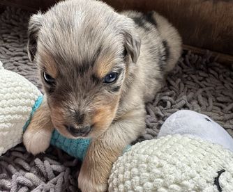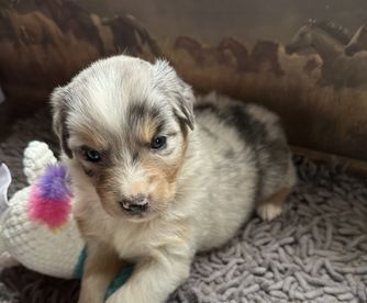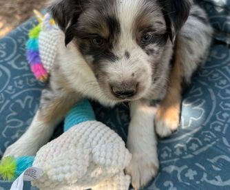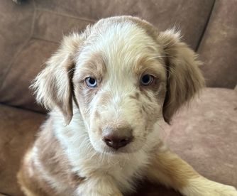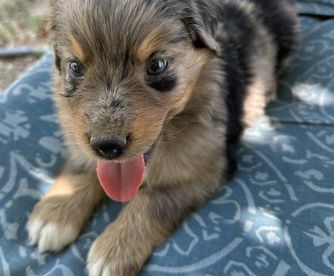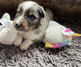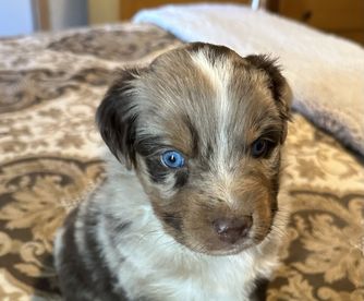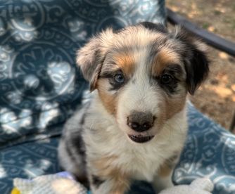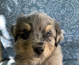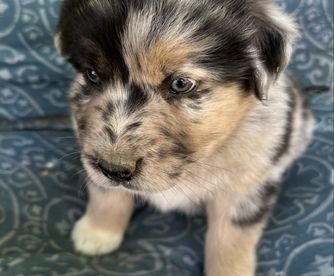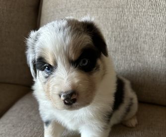 Our puppies include red merle, blue merle, red, and black tri-color. Colors will vary depending on the parent dogs.