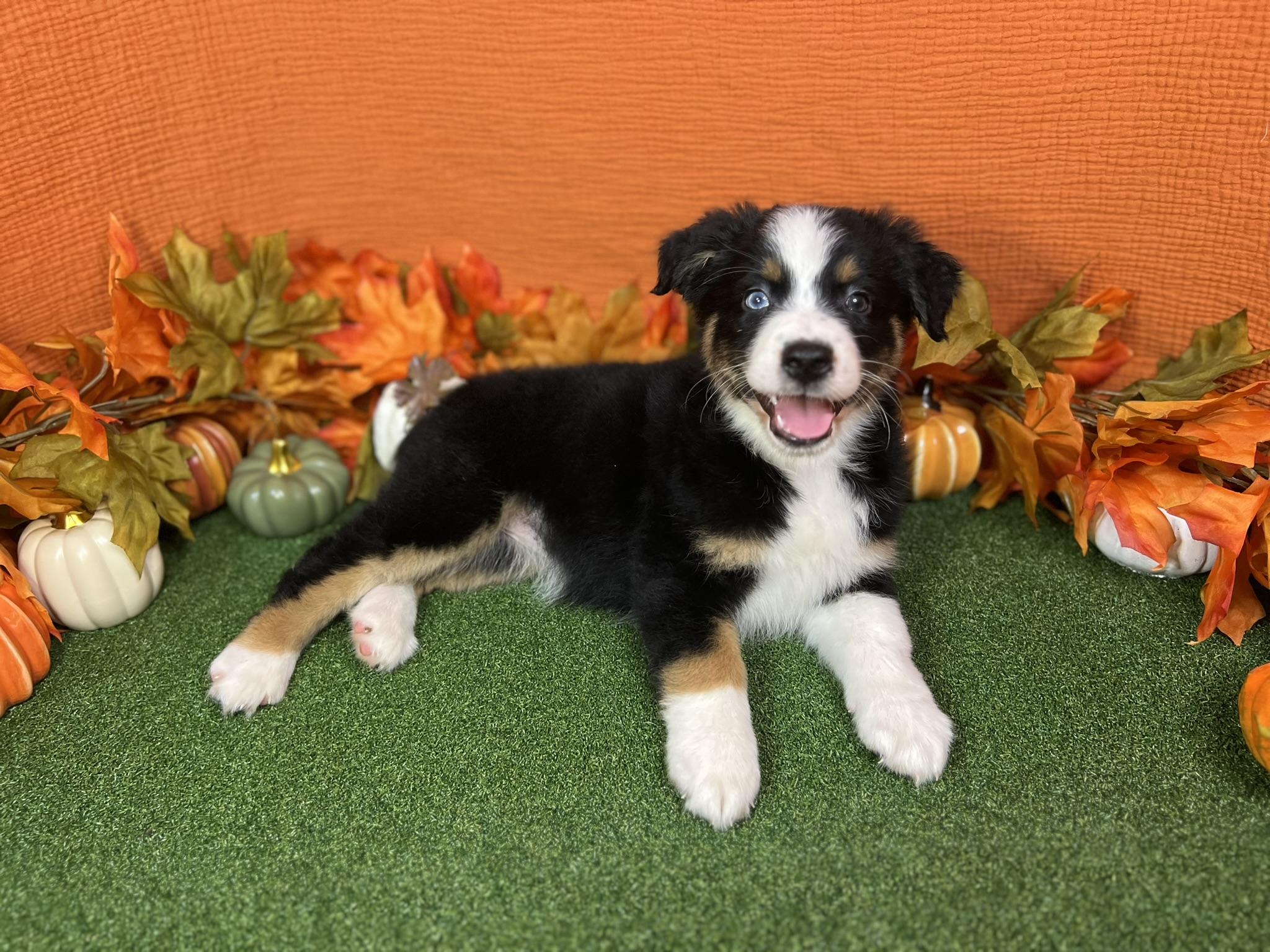 Our puppies include black, red merle, blue merle, and red. Colors will vary depending on the parent dogs.