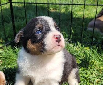 Our puppies include blue merle and red tri-color. Colors will vary depending on the parent dogs.