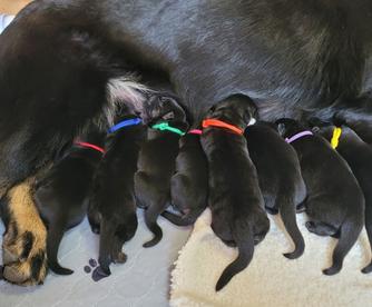 Our puppies include sable, black, black and tan, black and red, and bi-color. Colors will vary depending on the parent dogs.