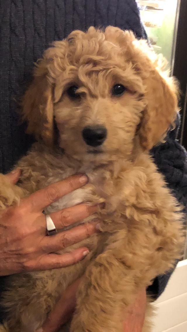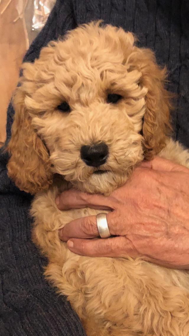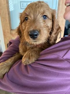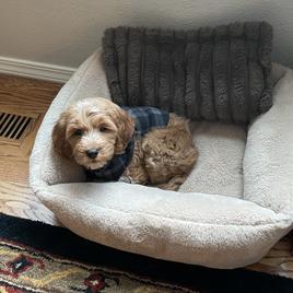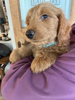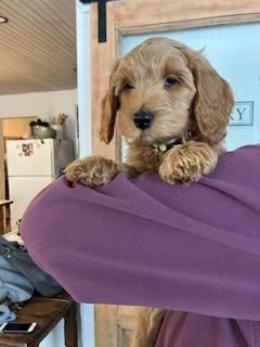We stumbled upon Kari through Gooddog.com and we couldn't be happier that we did. Kari is very responsive to messages and was able to answer all of our questions! She took the time to do a video call with us using Google Meet since we didn't have FaceTime (she downloaded the app and registered specifically for us to be able to meet our sweet pup). We were instantly drawn to Elton (now Griffin) and she was able to discuss personality traits with us to help us narrow down our difficult decision. She offered for us to come meet all the puppies but we were confident Griffin was our pup. She was willing to meet us half way since we lived several hours away from her which was very much appreciated. Kari and her family love these puppies and it showed when we met with her and her daughter and learned their breeding practices. We couldn't be happier with Griffin. We've had him just over 2 weeks now and he has the best temperament. He is so chill but loves to have fun! He is learning to potty train soo fast and is super easy to crate train. Everything has been so flawless and we are grateful for such a great experience! We were looking specifically for a multigenerational goldendoodle puppy due to our son having allergies. I am happy to say that he is showing zero signs of allergy issues! We brush Griffin and not a single hair sheds off of him! So happy!! Thank you Kari and Family!