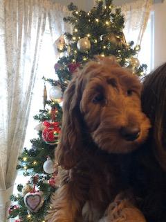 Copper is a 3-year old female F1b Goldendoodle. She is very active and playful, loves to play catch and fetch, and go for walks with us. She is a cuddler, wants to be as close as she can to her family and makes friends so easily! Gets along very well with other dogs/cats, but doesn't have any live-in pet family. She is fully tested for all OFA joint, eye, heart, and DNA tests, and has been a wonderful mama to one prior litter.