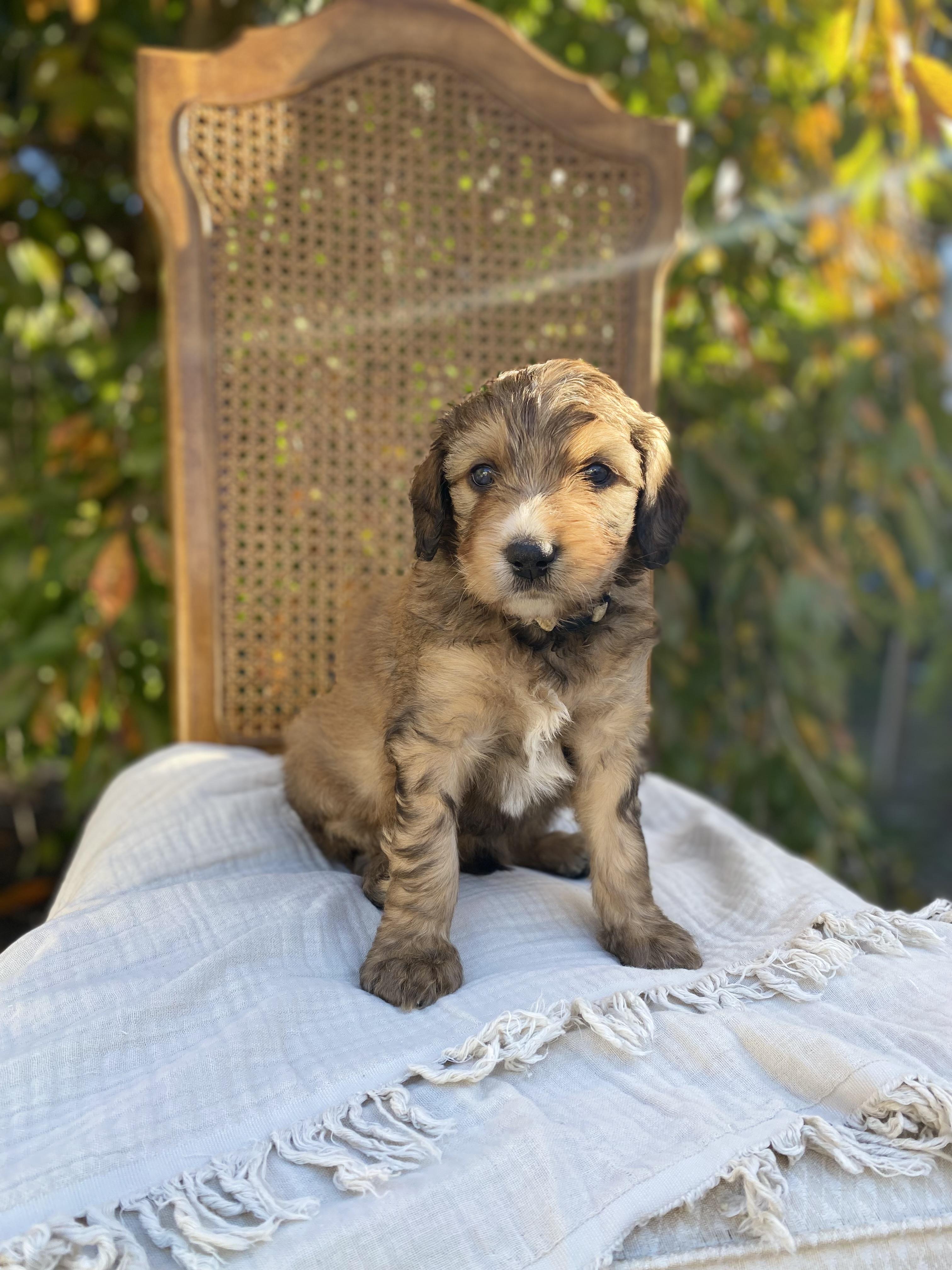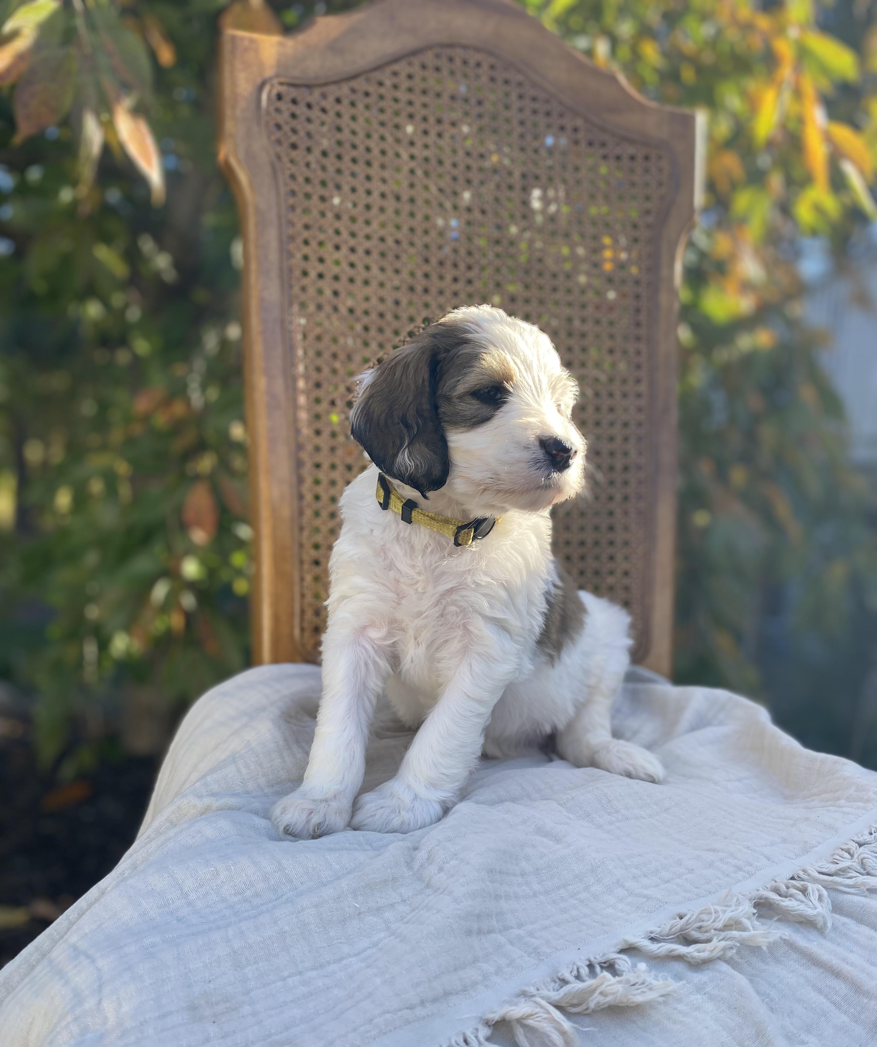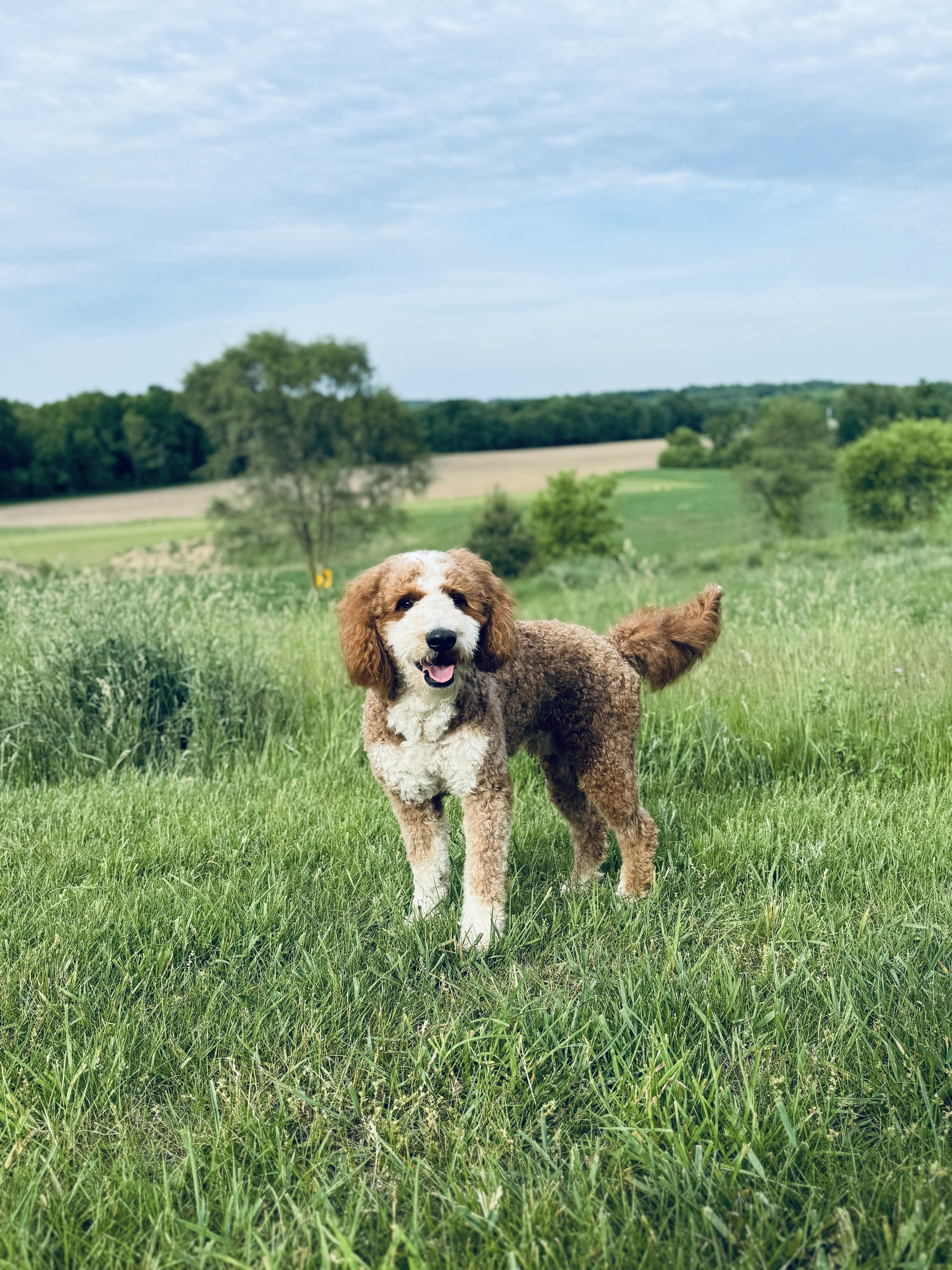 Tucker is a male Bernedoodle. Carefully selected as a great representative of his breed, Aubrie decided to make him part of their program. Aubrie has passed Good Dog’s screening process, which involved a review of their breeding practices, environment, and the mental and physical health of their dogs.