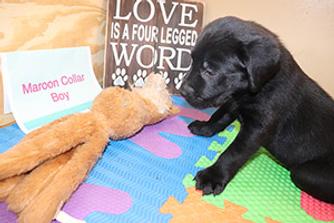 Our puppies include black, chocolate, and yellow. Colors will vary depending on the parent dogs.