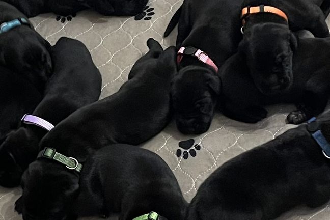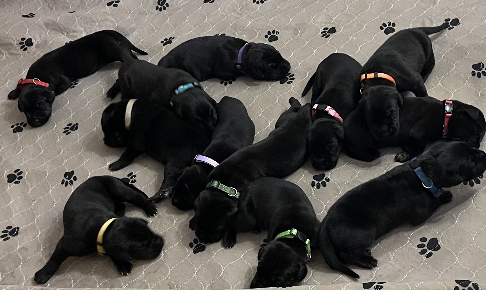 Our puppies are black. Colors will vary depending on the parent dogs.