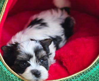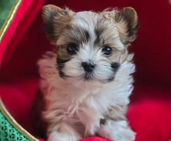 Our Yorkshire Terrier puppies include chocolate, tan and white, chocolate and tan, and black and tan. Biewer Terrier puppies include chocolate tan and white and black tan and white. Colors will vary depending on the parent dogs.