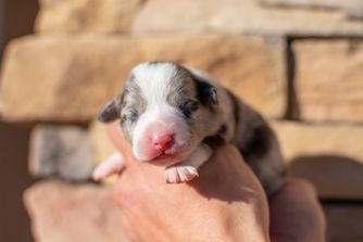 Our American Corgi puppies include brindle and white, brindle merle and white, red, red merle and white, red and white, blue merle and white, and black and white. Pembroke Welsh Corgi puppies include red, sable, and blue. Colors will vary depending on the parent dogs.