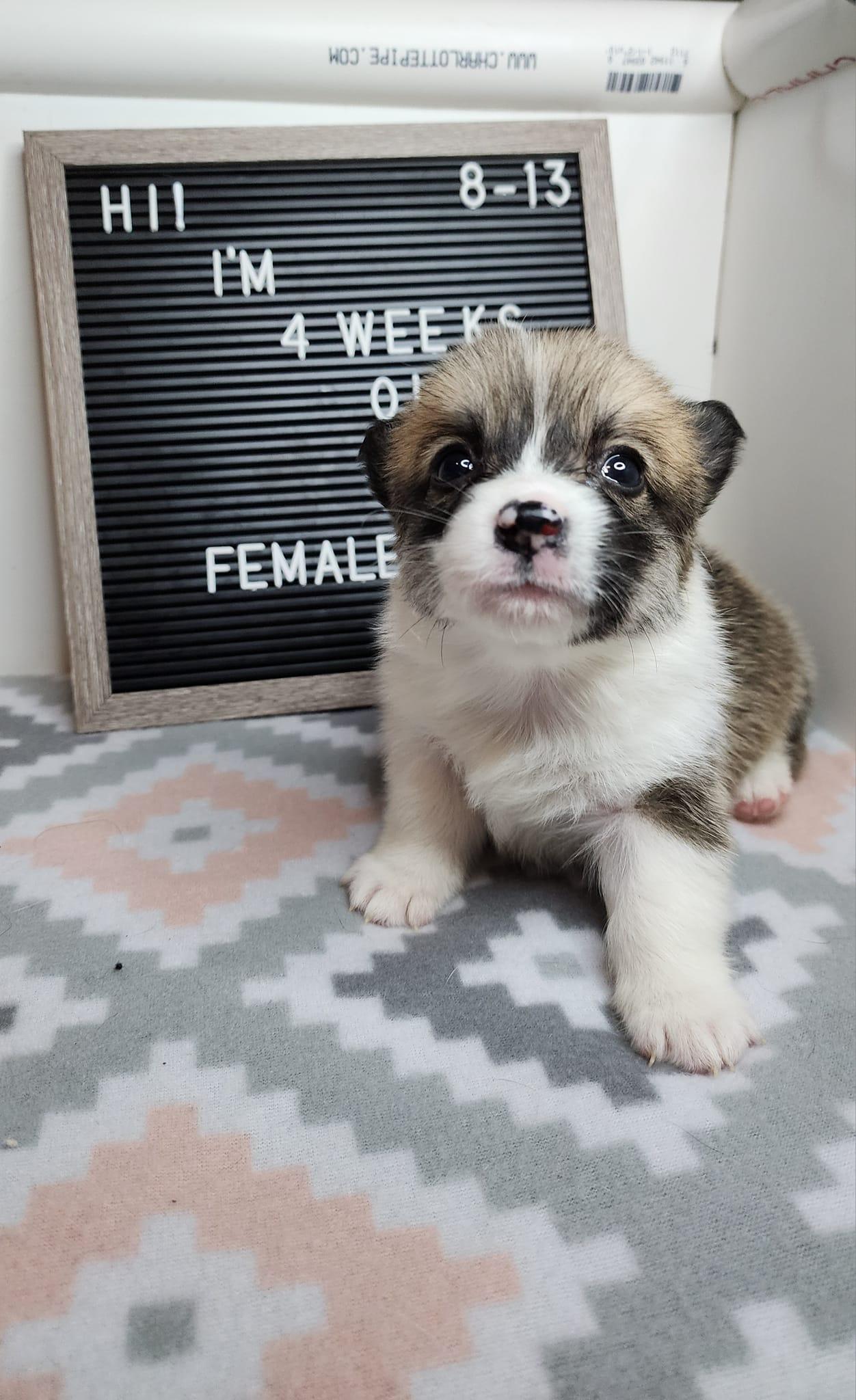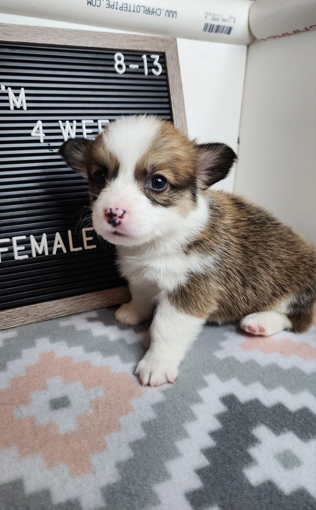 A fiesty, but friendly, girl. She is very sweet, loves a cuddle, and to bark at the wind (as corgis are wont to do). Loves a nice cozy blanket and her favorite human to cuddle up with. She is a wonderful mother as we have found out with the two litters she has had, but loves being our pet above all and being spoiled rotten!