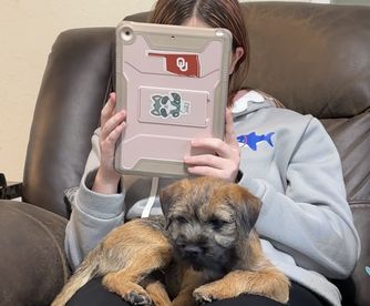 I'm Thomas and Shannon G., the breeder behind Cornerstone Border Terriers located in Coleman, OK. Our dogs are bred with the intent to improve the breed as a whole. It is our goal to maintain the health and structural standards set forth by the Border Terrier Club of America. Our dogs are bred with a focus on conformation, and every one of them are happy, healthy pets first.