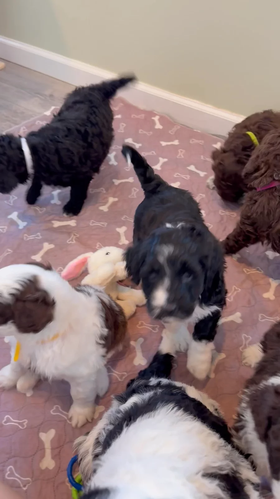 Our puppies include black, white, and brown. Colors will vary depending on the parent dogs.