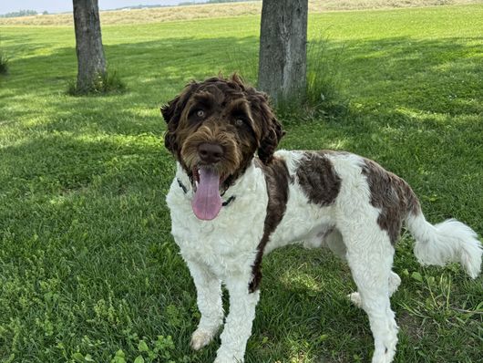 I'm Emma S., the breeder behind Cornerstones Porties located in Brookville, OH. Our breeding dogs have to meet a high standard of genetic qualities before we consider breeding them. We seek dogs that not only physically meet the breed standards but go above and beyond with their health and the true heart and personality of a Portuguese Water Dog.