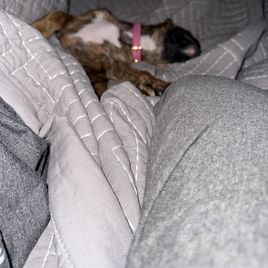 Traylynn loves her attention. She will bother you until you pay attention to her. She loves laying on the couch with me in the evenings