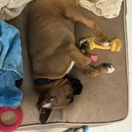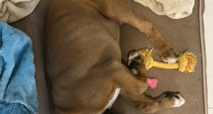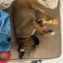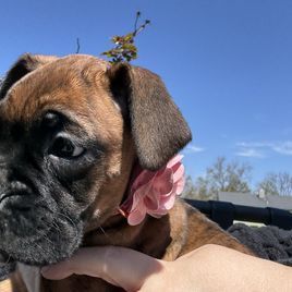 Barb always responded right away to our text inquiries, and we picked up Penny (Charlotte) without any problems whatsoever. Penny is a very bright little boxer-full of energy and doing well. My husband and I are really enjoying her company.