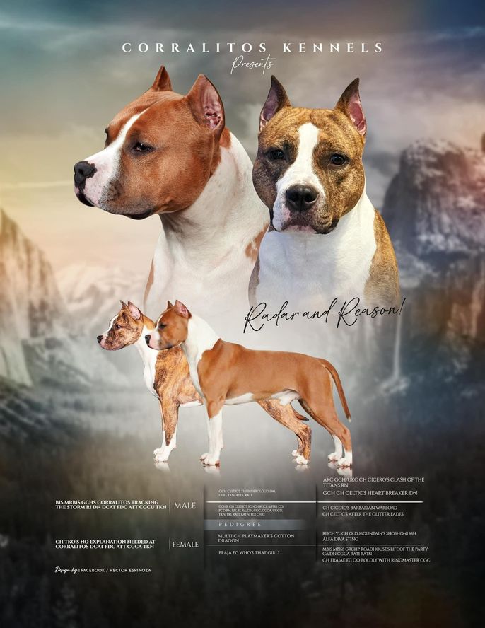 Corralitos Kennels reports to performing the health tests below on their breeding dogs. Ask your breeder about the tests performed on the parents of your litter. Learn more about health testing for American Staffordshire Terriers.