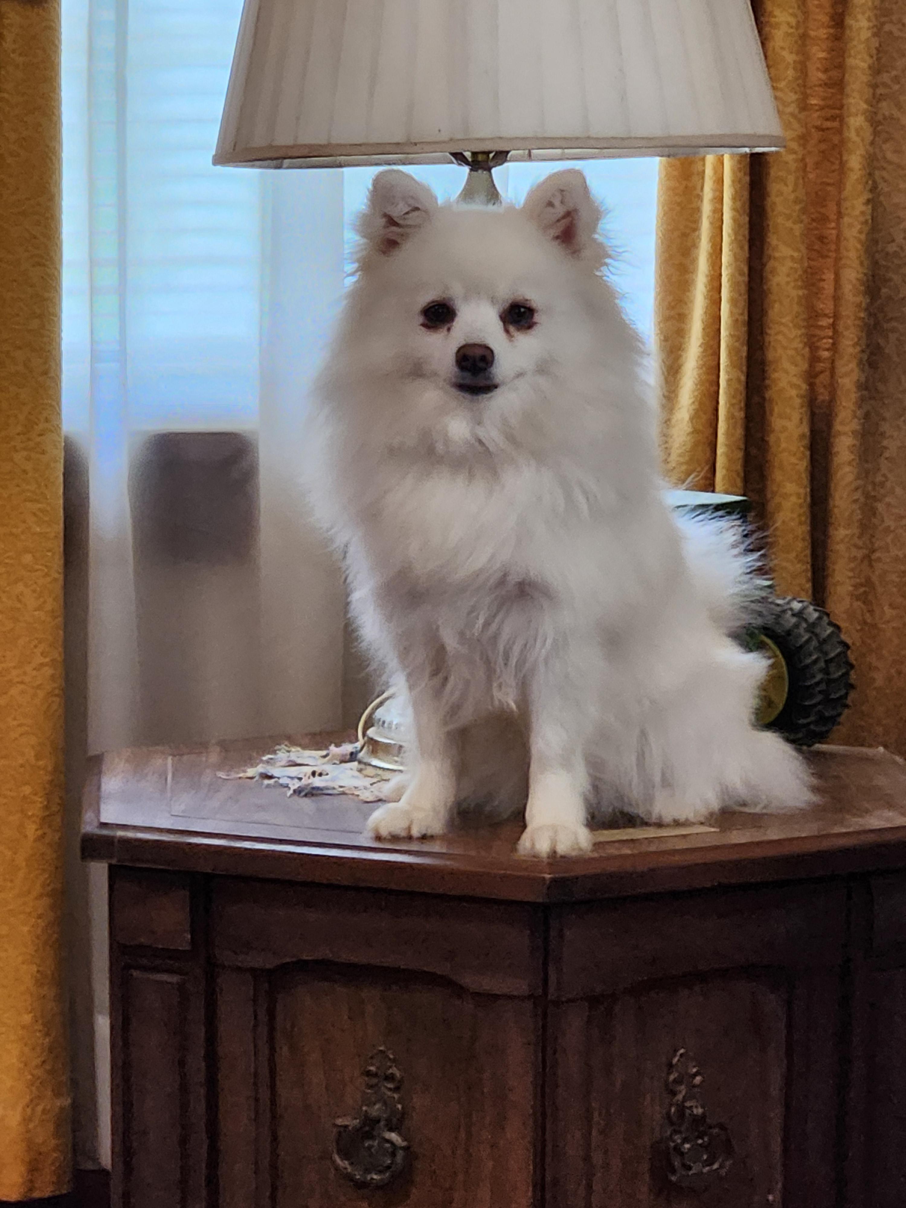 Tuffy is a male American Eskimo Dog. Carefully selected as a great representative of his breed, Gerri decided to make him part of their program. Gerri has passed Good Dog’s screening process, which involved a review of their breeding practices, environment, and the mental and physical health of their dogs.