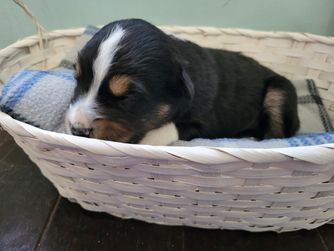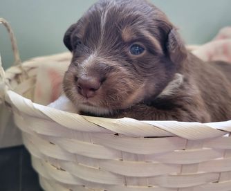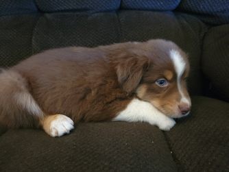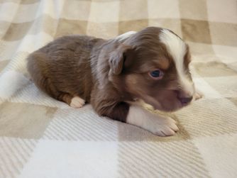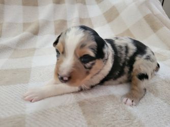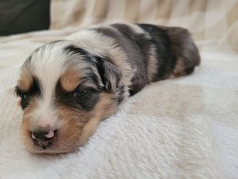 I'm Jordan S., the breeder behind Cosmic Aussies located in Chillicothe, OH. We offer home-raised AKC Australian Shepherds with a focus on health, temperament, adaptability, and family-friendly personalities. We have one breeding female and male, so each of our litters are carefully planned, and receive our full attention. Our parent dogs have a low herding drive and have more of a laid-back personality. We strive to bring that out in each litter by socializing our puppies and exposing them to different enriching activities. Our pups make amazing companions!
