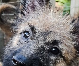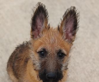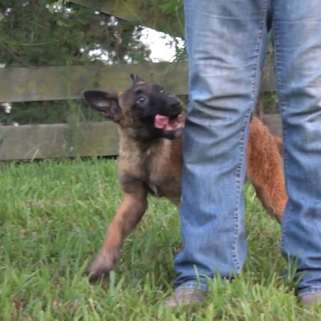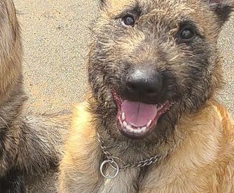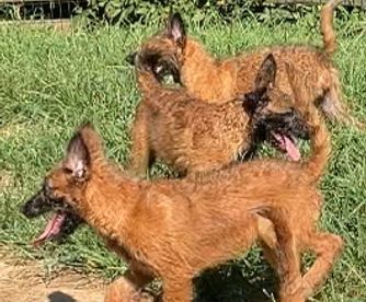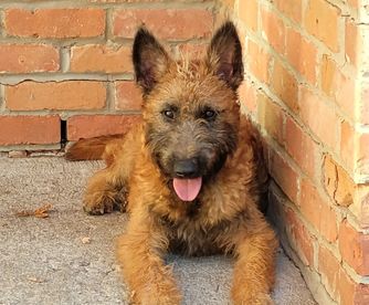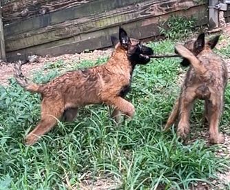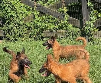 Our Belgian Laekenois puppies include fawn, red sable, and mahogany. Dutch Shepherd puppies are silver brindle. Working Dog Cross puppies are tan. Colors will vary depending on the parent dogs.