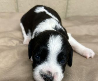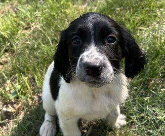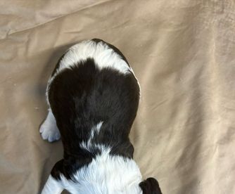 Our puppies include liver and white and black and white. Colors will vary depending on the parent dogs.