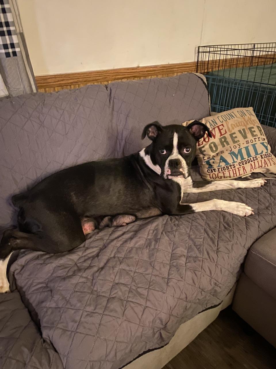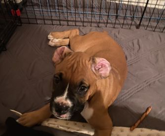 Odin Duke is a male Boxer about 5 years old. Carefully selected as a great representative of his breed, Marianne decided to make him part of their program. Marianne has passed Good Dog’s screening process, which involved a review of their breeding practices, environment, and the mental and physical health of their dogs.