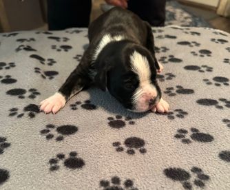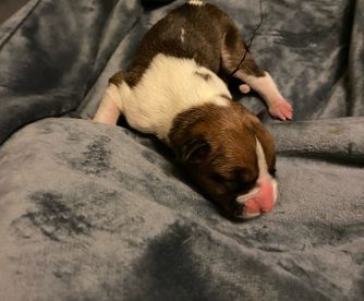 “The Puppies incluse the guarantee, AKC Registered, first round of shots, dewormed, tales docked and socialization program. AKC papers, shots, and health certificate.”