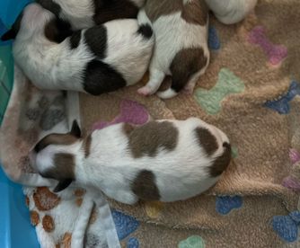 Our puppies include tri-color and white. Colors will vary depending on the parent dogs.