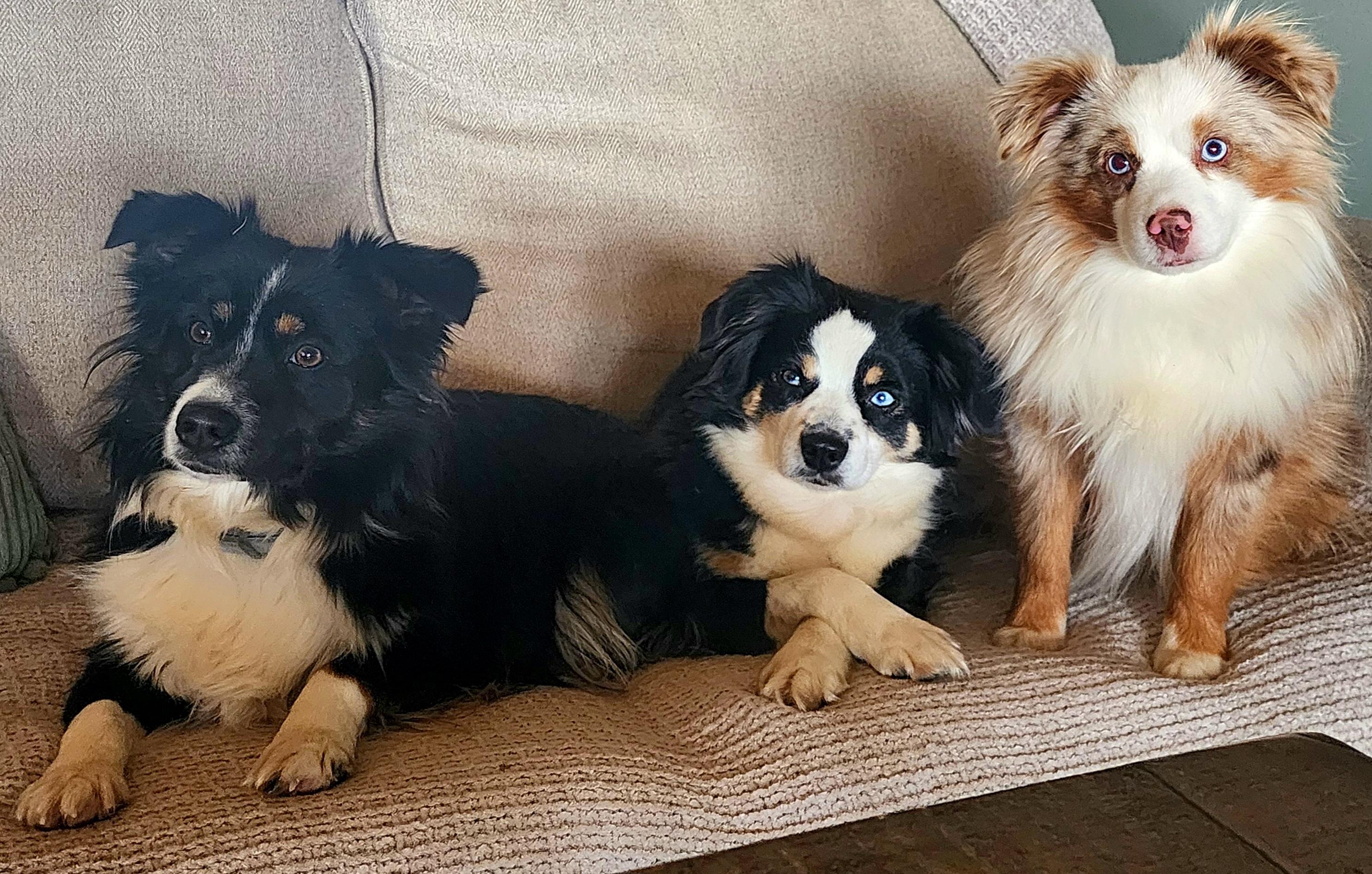 Our Miniature Australian Shepherd puppies include blue merle, black tri, red tri, and red merle. Aussiedoodle puppies include sable, blue merle, and black phantom. Toy Australian Shepherd puppies include black tri, blue merle, red merle, and red tri. Colors will vary depending on the parent dogs.
