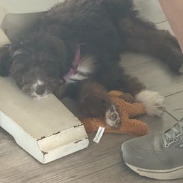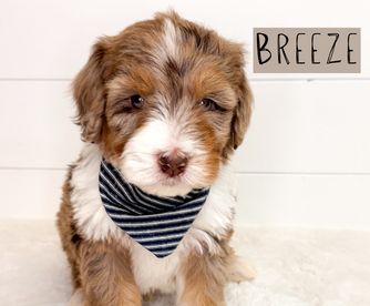 Sunny is a female Bernedoodle. Carefully selected as a great representative of her breed, Ashtyn decided to make her part of their program. Ashtyn has passed Good Dog’s screening process, which involved a review of their breeding practices, environment, and the mental and physical health of their dogs.