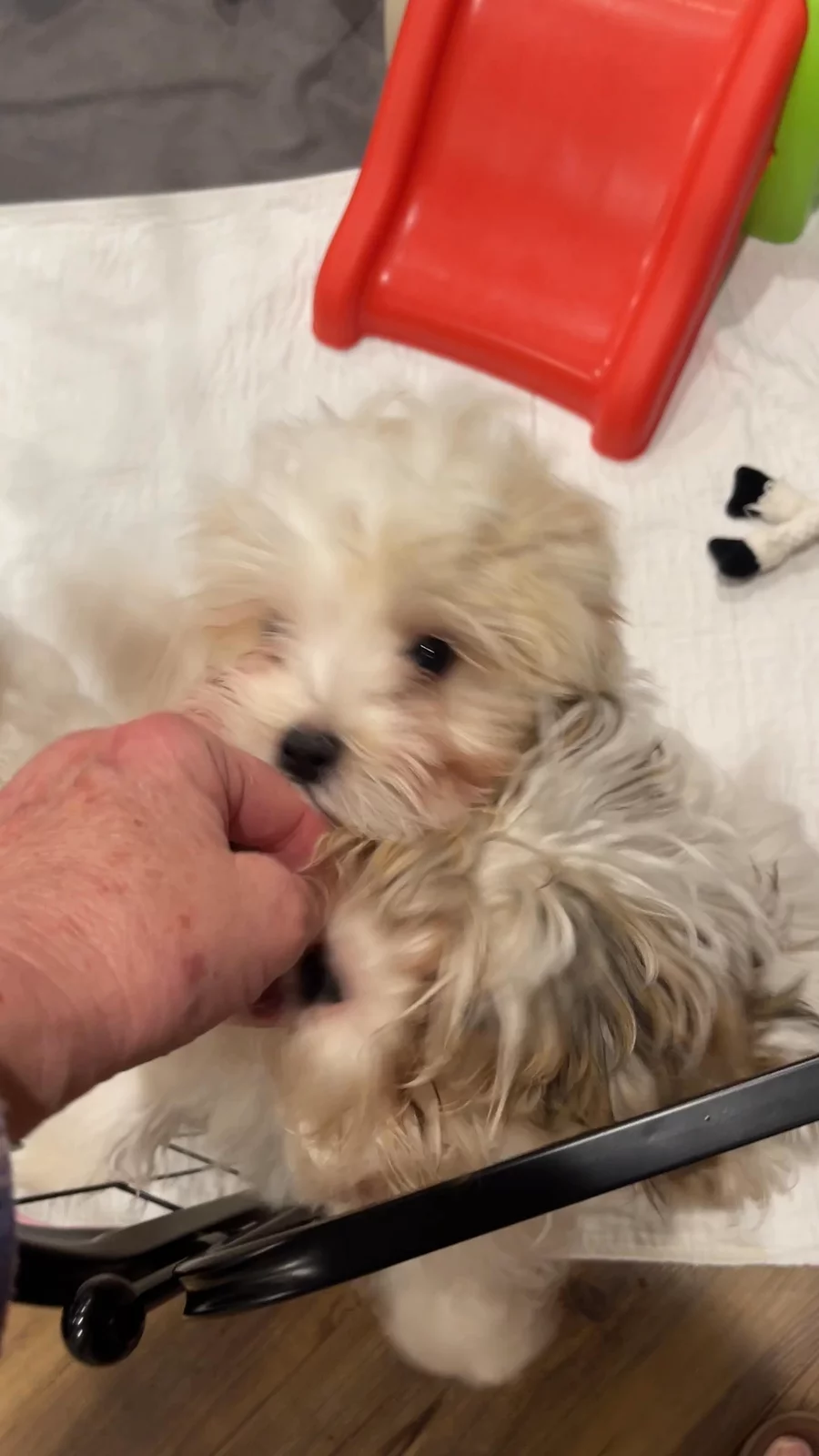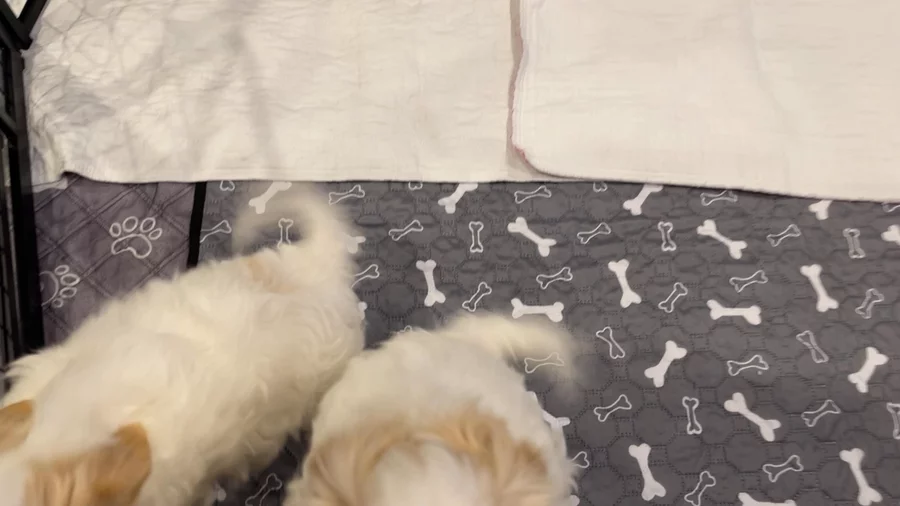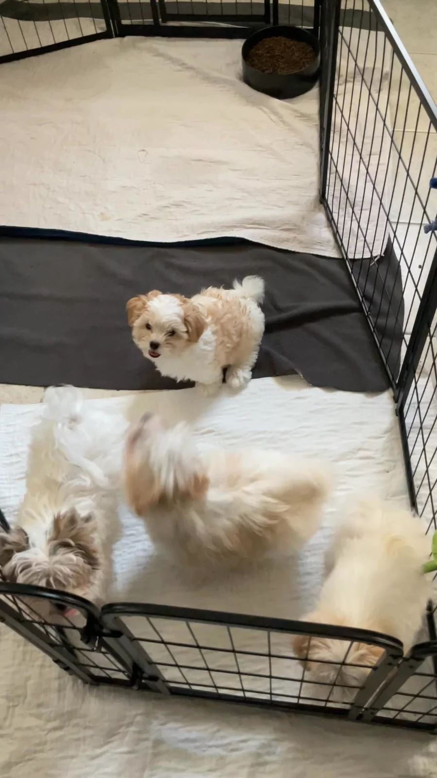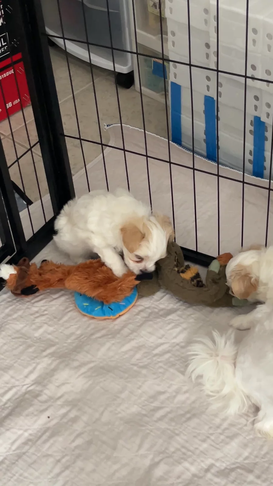 Video is of Astria though my husband can’t tell them apart. There are subtle differences and I spend a lot of time with these gorgeous babies. Mom is 100% Korean and dad is a Polish import gold and white exotic yorkie.