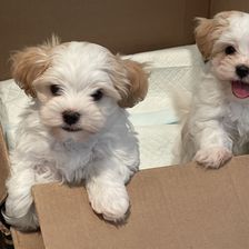 2 of our girl morkies (maltese x yorkie). Our morkies have coats like maltese with babydoll heads and gorgeous fur!