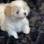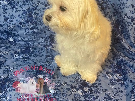 Baby is an AKC registered Korean maltese and a Polish import. She is 1/2 Angela White breeding. She is a delicate little girl who loves to be the center of attention. She loves to be live on and can be found cuddling her puppies as much as playing with them.