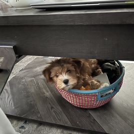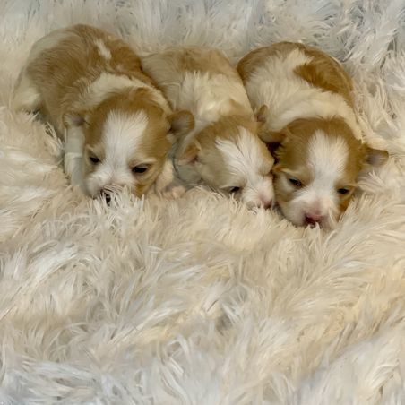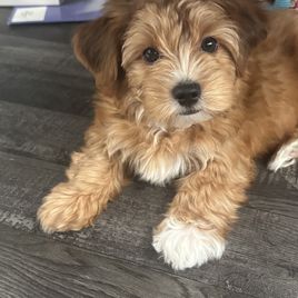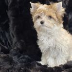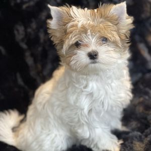 Three morkie puppies. Very beautiful with deeper honey color in their coats. Sweet loving puppies. Thick soft hair like Maltese. No shed because they are Yorkie and Maltese cross!