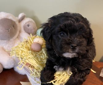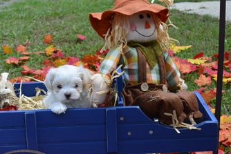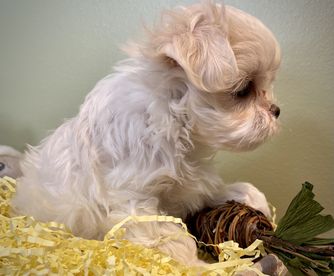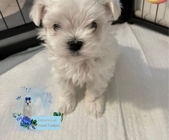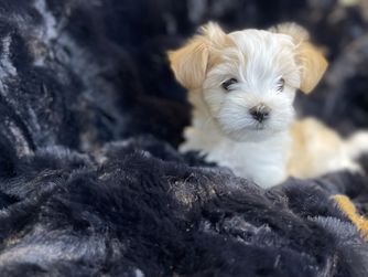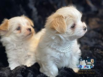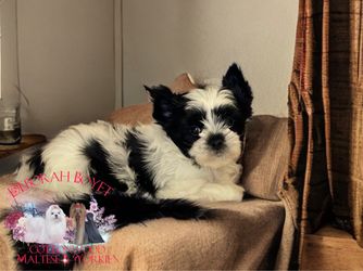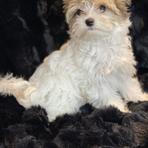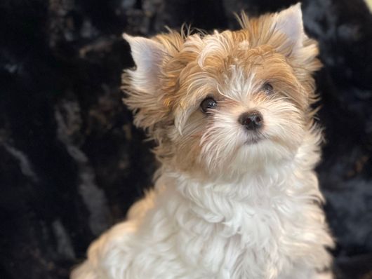 Our Maltese puppies include white, white and tan, and white and lemon. Morkie puppies include tan, piebald, gold, chocolate, black, white and lemon, and white. Yorkshire Terrier puppies include chocolate, tan and white, gold, and parti. Colors will vary depending on the parent dogs.