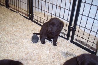 Frango has OFA Good hips/normal elbows, normal opthamologist exams, clear for PRA, EIC, HNPK, by testing or parentage. Super sweet natured, beautiful, correct conformation, excellent dark pigment, fabulous pedigree! Avid retriever too!