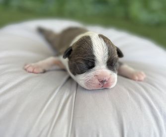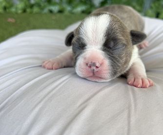 Bebe is a female Boston Terrier. Carefully selected as a great representative of her breed, Sharece decided to make her part of their program. Sharece has passed Good Dog’s screening process, which involved a review of their breeding practices, environment, and the mental and physical health of their dogs.