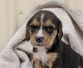 Beagle puppies include black white and tan and black tan and bluetick. Pembroke Welsh Corgi puppies include white and black, black and tan, and white and red. Labrador Retriever puppies include black, chocolate, and yellow. Colors will vary depending on the parent dogs.