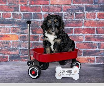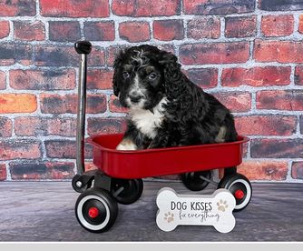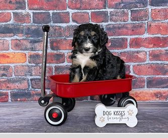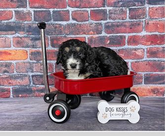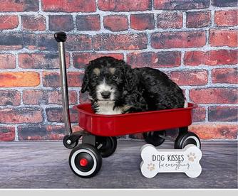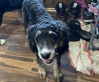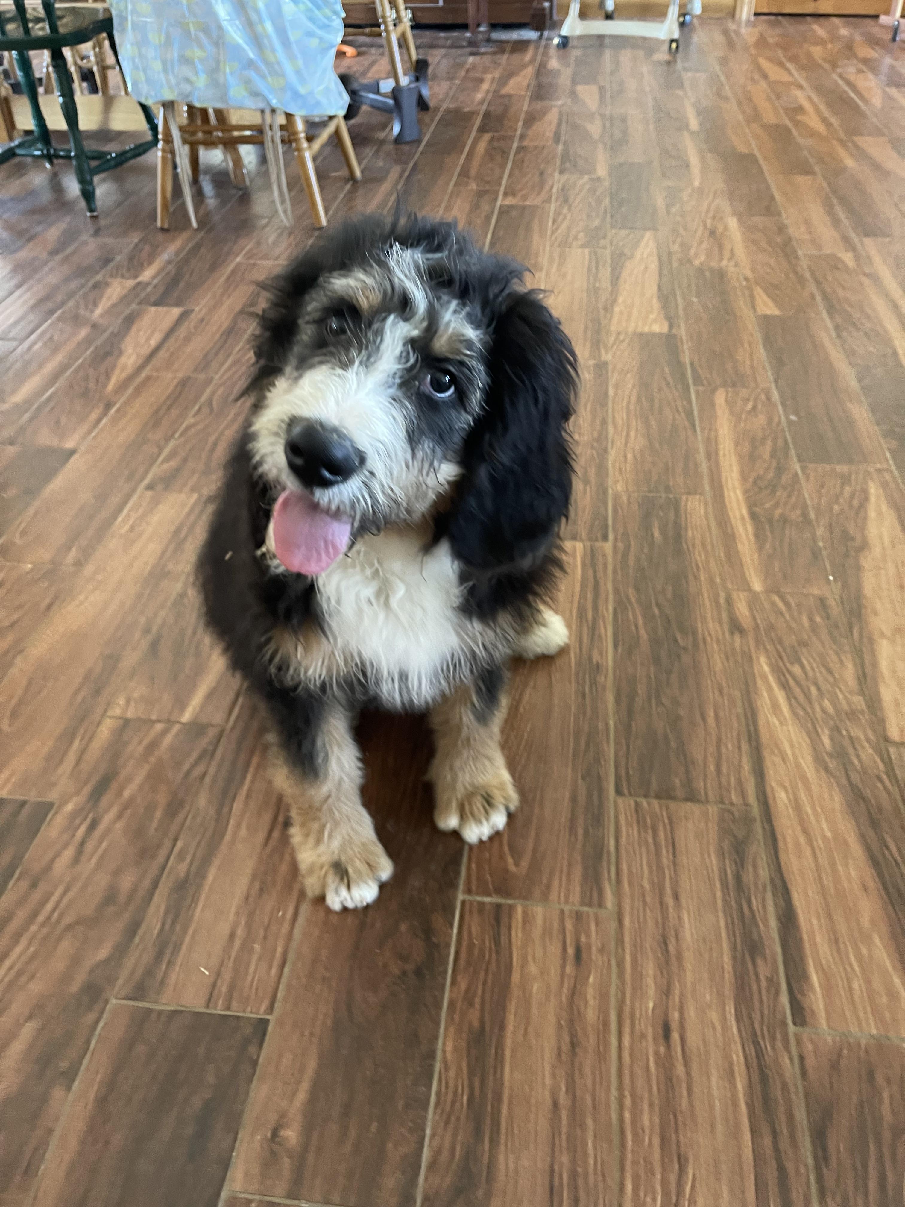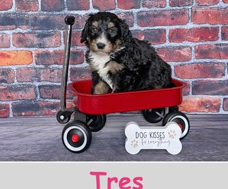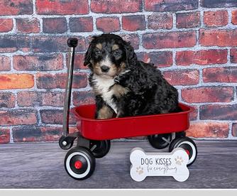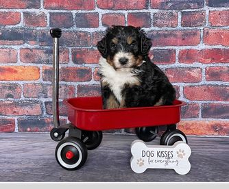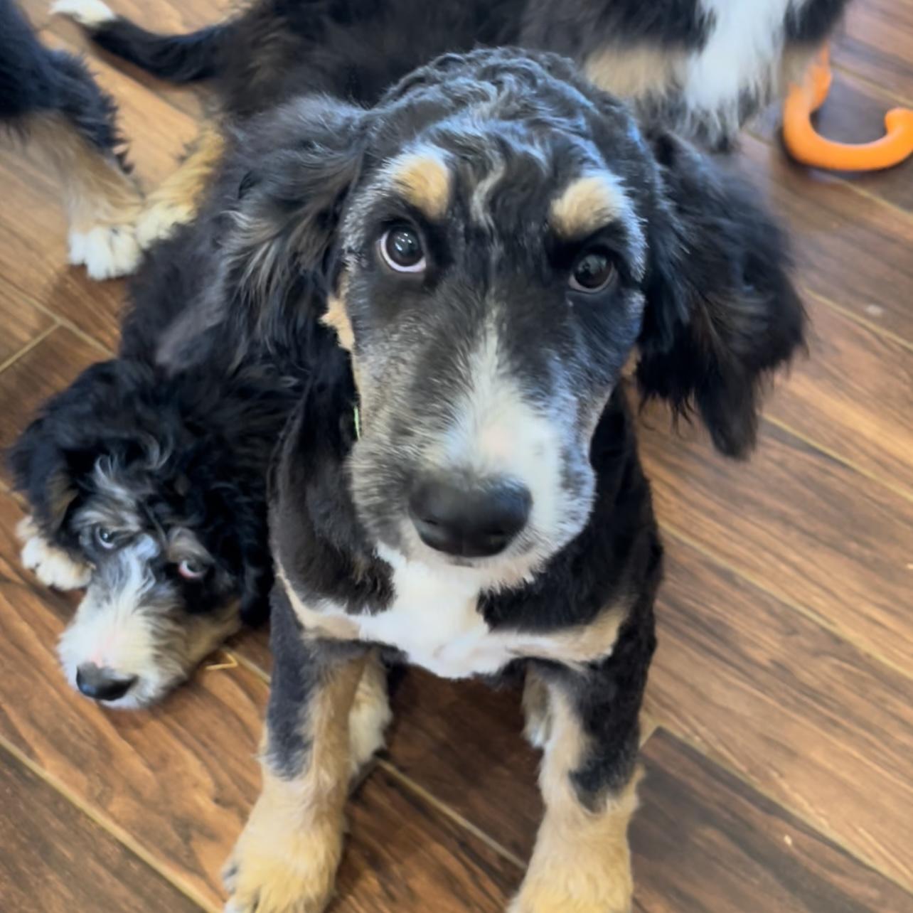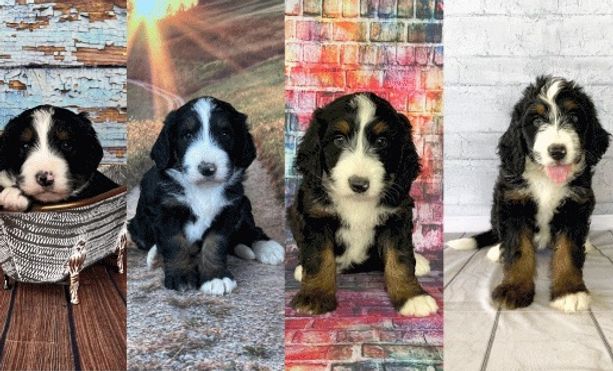 Our Bernedoodle puppies are tri-color. Poodle puppies are parti. Colors will vary depending on the parent dogs.