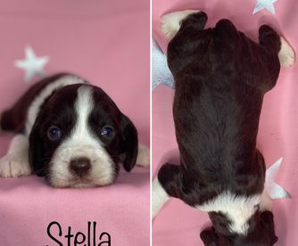 Stella is a female English Springer Spaniel. Carefully selected as a great representative of her breed, Brianne decided to make her part of their program. Brianne has passed Good Dog’s screening process, which involved a review of their breeding practices, environment, and the mental and physical health of their dogs.
