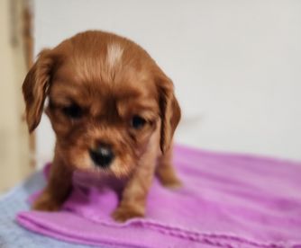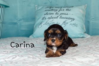 Our puppies include blenheim, ruby, tri-color, and black and tan. Colors will vary depending on the parent dogs.
