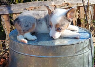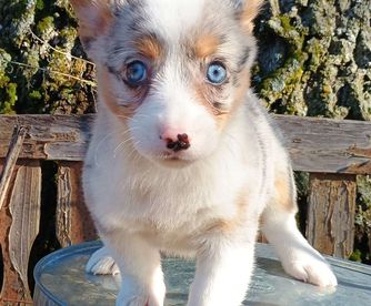 Blue Merle with brown points American Corgi