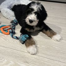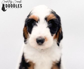 Communicating with Tarah at Country Creek Doodles has continued to be an ongoing pleasure. She's always ready to answer your questions and help you from before you make your puppy choice through the purchase and pickup process and beyond. Our boy, Jake (an F1b mini-Bernedoodle), who is 5.5 months old, is both a joy and a lot of work! No one should approach being a puppy parent lightly. But puppy kisses and cuddles are your reward, not to mention the look on their faces when they see you--multiple times a day. Unconditional love is real! And here's my point-- loving puppies come from breeders who treat with loving care their mamas and their mamas' litters. I know that Tarah does this -- as does her whole family who participates in their care. I couldn't be happier about our boy, Jake (particularly when he's resting by my side! LOL). There are many mini-Bernedoodle breeders to choose from, but you would never make a mistake by engaging Tarah at Country Creek Doodles. It's your opportunity to take their love of your puppy and continue it throughout your puppy's life. :)