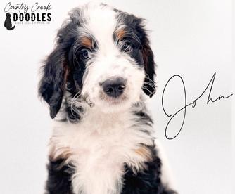 Communicating with Tarah at Country Creek Doodles has continued to be an ongoing pleasure. She's always ready to answer your questions and help you from before you make your puppy choice through the purchase and pickup process and beyond. Our boy, Jake (an F1b mini-Bernedoodle), who is 5.5 months old, is both a joy and a lot of work! No one should approach being a puppy parent lightly. But puppy kisses and cuddles are your reward, not to mention the look on their faces when they see you--multiple times a day. Unconditional love is real! And here's my point-- loving puppies come from breeders who treat with loving care their mamas and their mamas' litters. I know that Tarah does this -- as does her whole family who participates in their care. I couldn't be happier about our boy, Jake (particularly when he's resting by my side! LOL). There are many mini-Bernedoodle breeders to choose from, but you would never make a mistake by engaging Tarah at Country Creek Doodles. It's your opportunity to take their love of your puppy and continue it throughout your puppy's life. :)